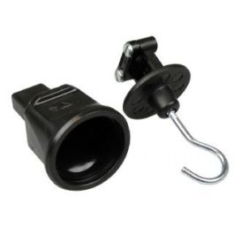 Je maakt dit eindstuk vast aan het einde van een prikkabel. Door middel van het haakje kun je het snoer (inclusief verlichting) ergens aan ophangen.